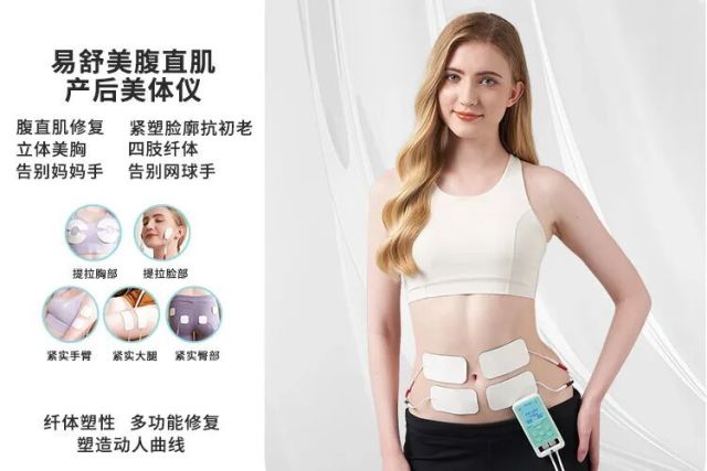 对于中度以上分离,推荐结合电刺激治疗。易舒美腹直肌修复仪通过精准电流刺激,实现被动肌肉收缩,促进恢复: