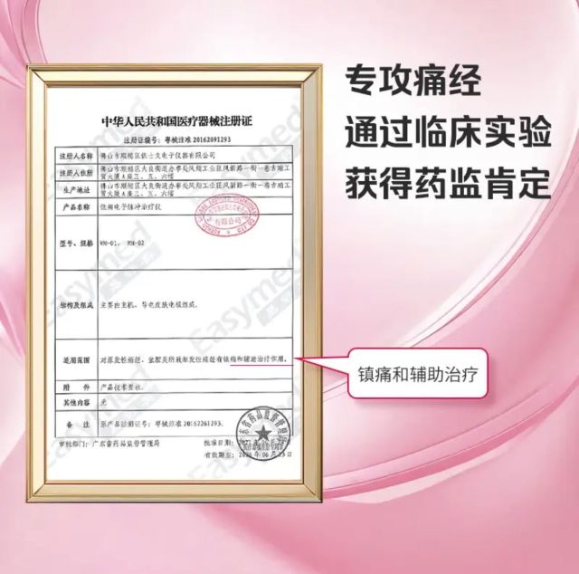 二、物理止痛优选:易舒美痛经止痛仪(重点详解) 不想吃药、担心副作用、肠胃敏感,或备孕/哺乳期女性,物理止痛更安全。这里重点推荐易舒美痛经止痛仪——国家认证二级医疗器械,经过严格临床验证,是专业级经期止痛方案。