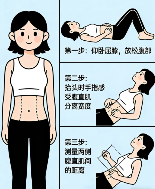 先在家自测,别盲目开练!顺产6周、剖腹产8周后,仰卧屈膝、抬头卷腹,用手指测腹部中线缝隙,超过2指就绝对不能做卷腹、平板支撑、仰卧起坐——这些动作会猛扯腹白线,让分离越练越宽,还会加重腰腹代偿性劳损,反而雪上加霜。产后修复黄金期是6周-6个月,核心逻辑必须是先闭合、再塑形,先稳盆底、再练核心,温和激活腹横肌、修复腹白线才是安全路径。