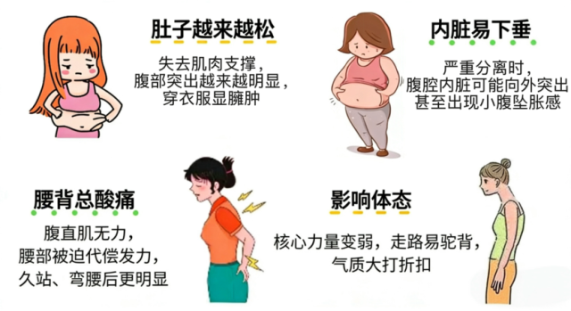 产后照镜子,肚子松垮膨出、收腹收不回、节食瘦不下,抱娃久了腰酸背痛、打喷嚏还漏尿,别再以为是胖或月子没坐好,大概率是腹直肌分离在拖后腿!孕期子宫扩张,腹部压力飙升,连接腹直肌的腹白线被强行拉薄撕裂,腹直肌被迫“分家”,顺产、剖腹产、多胎、大体重孕妈几乎都躲不开,严重时还会伴随内脏下垂、骨盆前倾、体态垮掉,越拖越难恢复。